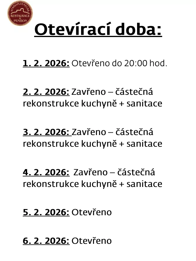 Vstupujete do kulinářského ráje, jenž prošel celkovou rekonstrukcí, jejímž cílem bylo zachovat vzhled a ráz původní restaurace, která byla prvním zákazníkům otevřena již před dvěma staletími. Poslední část rekonstrukce penzionu byla dokončena v lednu 2026.