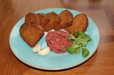 3ks Papričky Jalapaňos plněné čedarem smažené v kukuřičné strouhance, ledový salát, omáčka z modrého sýra